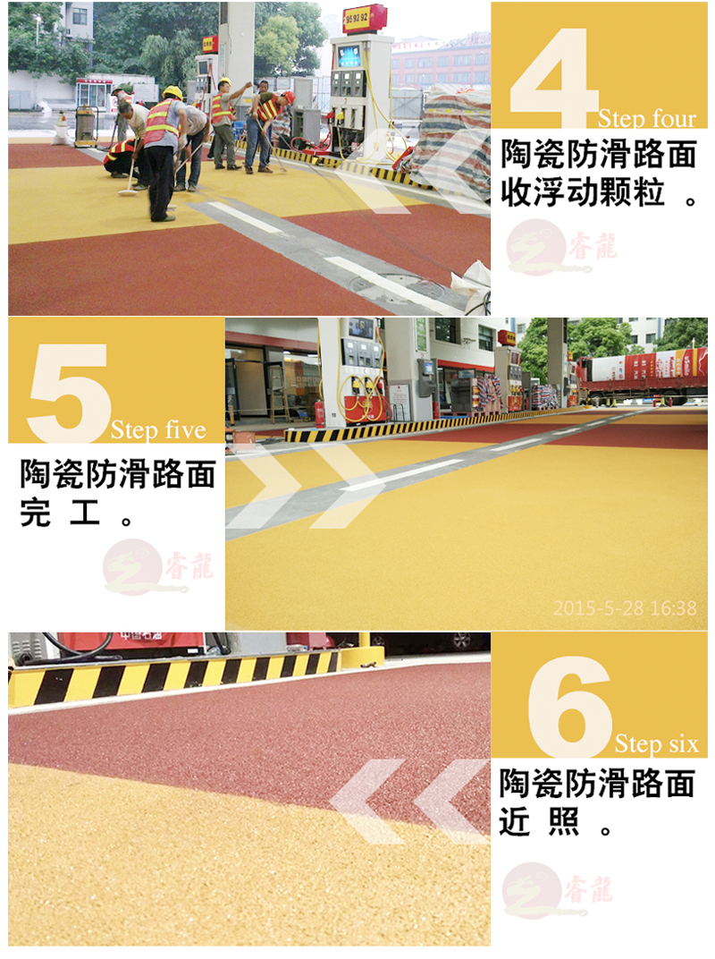 3、颜色丰富可选,色彩艳丽持久:陶瓷制成的彩色防滑颗粒,通体一色,色泽丰富持久,美化环境,愉悦心境。