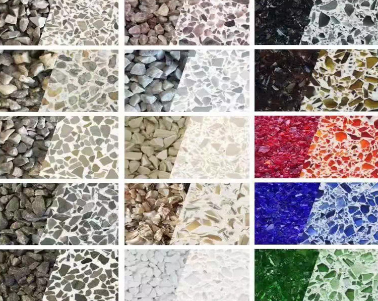 5、 新型无机磨石材料耐老化的特点不惧产品变色和变形,寿命与水泥材料一样长。无机磨石不燃、不发火、耐老化、耐污损、耐腐蚀、无异味无任何污染。