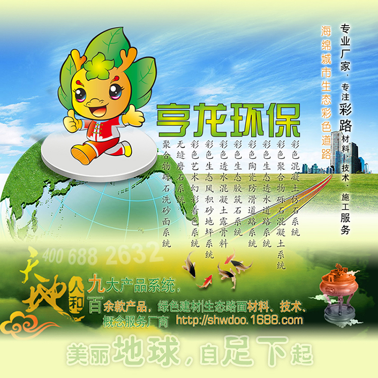 十五年专业环保生态路面厂商,九大产品系统, 百余款产品材料、技术、施工概念服务。完善的售前售后服务及施工指导体系,同时可代为客户进行各类彩色混凝土装饰面层的设计和施工的技术指导。