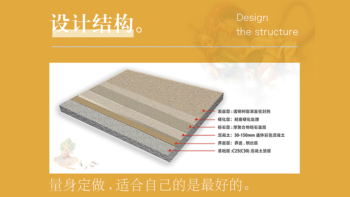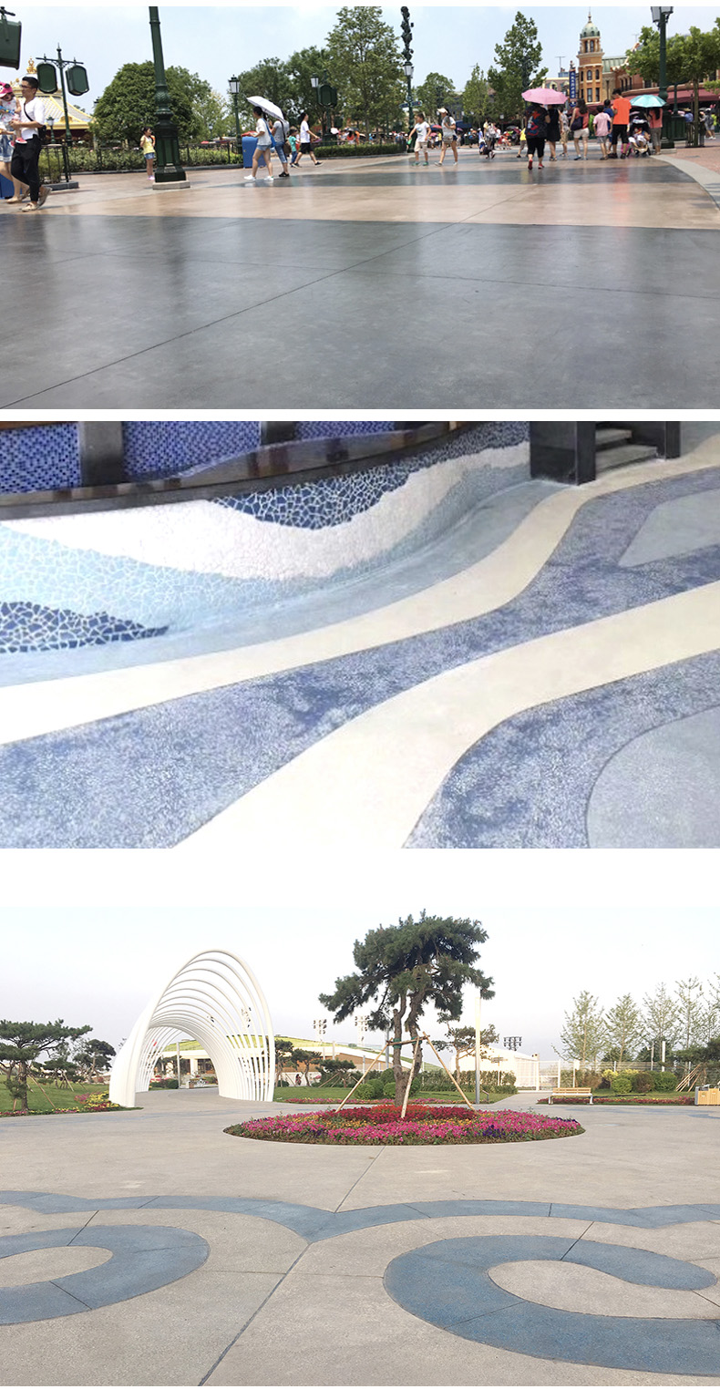 地坪景观的逐渐提升,人们不再满足单一颜色的变化所带来的视觉冲击,还希望能够实现集”色彩、质感、防滑、细腻和高承载”等多种功能与和效果于一体的地坪。