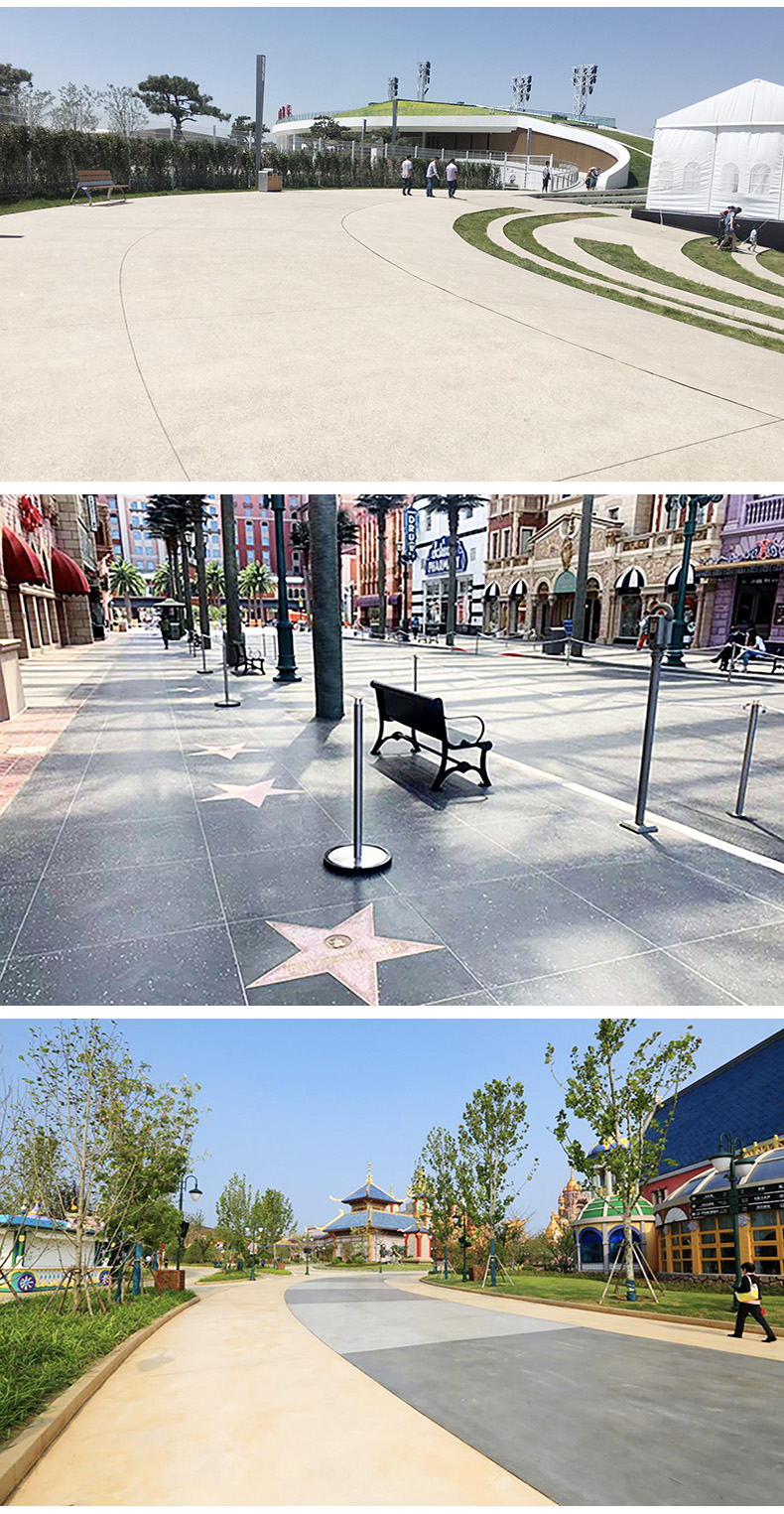 实现天然材料的质感,比石材具有更加丰富的艺术效果,实现石材相同的面层强度,更加坚固耐久的结构,是一种富含创意的装饰性混凝土地坪。被广泛应用于永久性装饰混凝土路面工程,如迪士尼、欢乐谷、游乐场、公共绿地项目、大型公建道路及广场、现代公园、房产售楼中心、景观道路及夜光路面等。