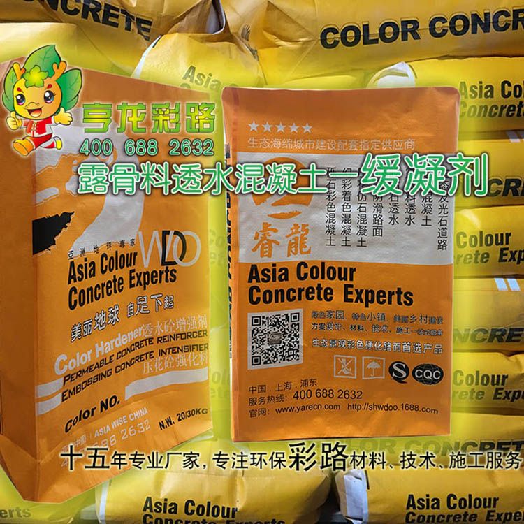 露骨料透水混凝土,海绵城市路面 让我们帮城市呼吸起来 露骨料透水混凝土工艺简介-生态 透水 景观 艺术-艺术生态透水装饰混凝土地坪系统露骨料透水混凝土地坪是采用天然彩石,高标号水泥,透水混凝土增强剂等材料拌和在一起,摊铺在地面上找平压实后,地坪表面喷上露骨料缓凝清洗剂,待基层混凝土有一定强度,用高压水枪洗去混凝土表面包裹石子的泥浆,使拌和混凝土的石子露在表面,还原石子本来的本质又不破坏混凝土强度的一种生态透水地坪工艺。 睿龙(WDO)露骨料透水混凝土拥有约20%孔隙,下雨时能够快速补充城市地下水资源,并能吸收车辆行驶产生噪音,另外彩色透水地坪能减少地面阳光反射热能,降低地面温度,减少“热岛效应”。 睿龙(WDO)露骨料透水混凝土能提供过滤效果,避免汽车及工业排放重金属,轮胎磨损及工业粉尘等直接流入河流中。 露骨料透水混凝土会呼吸的地坪——睿龙(WDO)彩色透水性混凝土地坪系统,彩色透水艺术地坪——环保、生态平衡城市的守护者!国家提倡推荐使用工艺产品! 露骨料透水混凝土,海绵城市路面特点 目前,生活和工业用水仍以地下水为主。过量开采,使得地下水位急剧下降,地表生态开始失衡,环境问题越来越严重。合理使用原来通透的土壤表面,较大限度地维持原有的自然状态已经成为了人类不可忽视的焦点问题。 睿龙(WDO)彩色露骨料透水混凝土地坪系统透水性混凝土的应用,其生态环境效应体现为: (1)增加城市可透水、透气面积,加强地表与空气的热量和水分交换,调节城市气候,降低地表温度,有利于缓解城市“热岛现象”; (2)充分利用雨雪降水,增大地表相对湿度,补充城区日益枯竭的地下水资源,发挥透水性路基的“蓄水池”功能;改善城市地表植物和土壤微生物的生存条件和调整生态平衡 (3)能够减轻降雨季节道路排水系统的负担,明显降低暴雨对城市水体的污染; (4)吸收车辆行驶时产生的噪音,创造安静舒适的生活和交通环境,雨天防止路面积水和夜间反光。 (5)防止路面积水和夜间路面反光,冬天不会在路面形成黑冰(由霜雾形成的一层几乎看不见的薄冰,极危险),提高了车辆、行人的通行舒适性与功能性; (6)大量的空隙能吸附城市污染物粉尘,减少扬尘污染。 (7)可以根据环境及功能需要设计图案,颜色,充分与周围环境相结合。