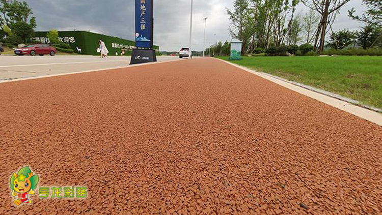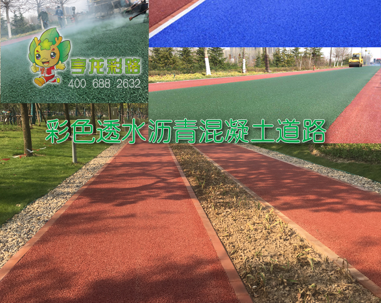 彩色透水沥青混凝土道路(透水沥青路面;会呼吸的路面)采用脱色沥青与各种颜色石料、色料和添加剂等材料在特定的温度下混合拌和的大空隙沥青混合料,经过摊铺、碾压而形成具有一定强度和路用性能的彩色透水沥青混凝土路面。也称作彩色透水沥青路面,将降雨透入到透水功能层,并通过层内将雨水横向收集排出或直接渗入透水混凝土(基层)再渗入土壤层,有效缓解了城市热岛效应,让城市路面高温天气不再发热。也从而消除了带来诸多行车不利作用的路表水膜,显著提高雨天行车的安全性、舒适性;同时,由于透水沥青路面的多孔特征可以大幅降低交通噪音,也被称为低噪音沥青路面(low-noise asphalt pavement)。
