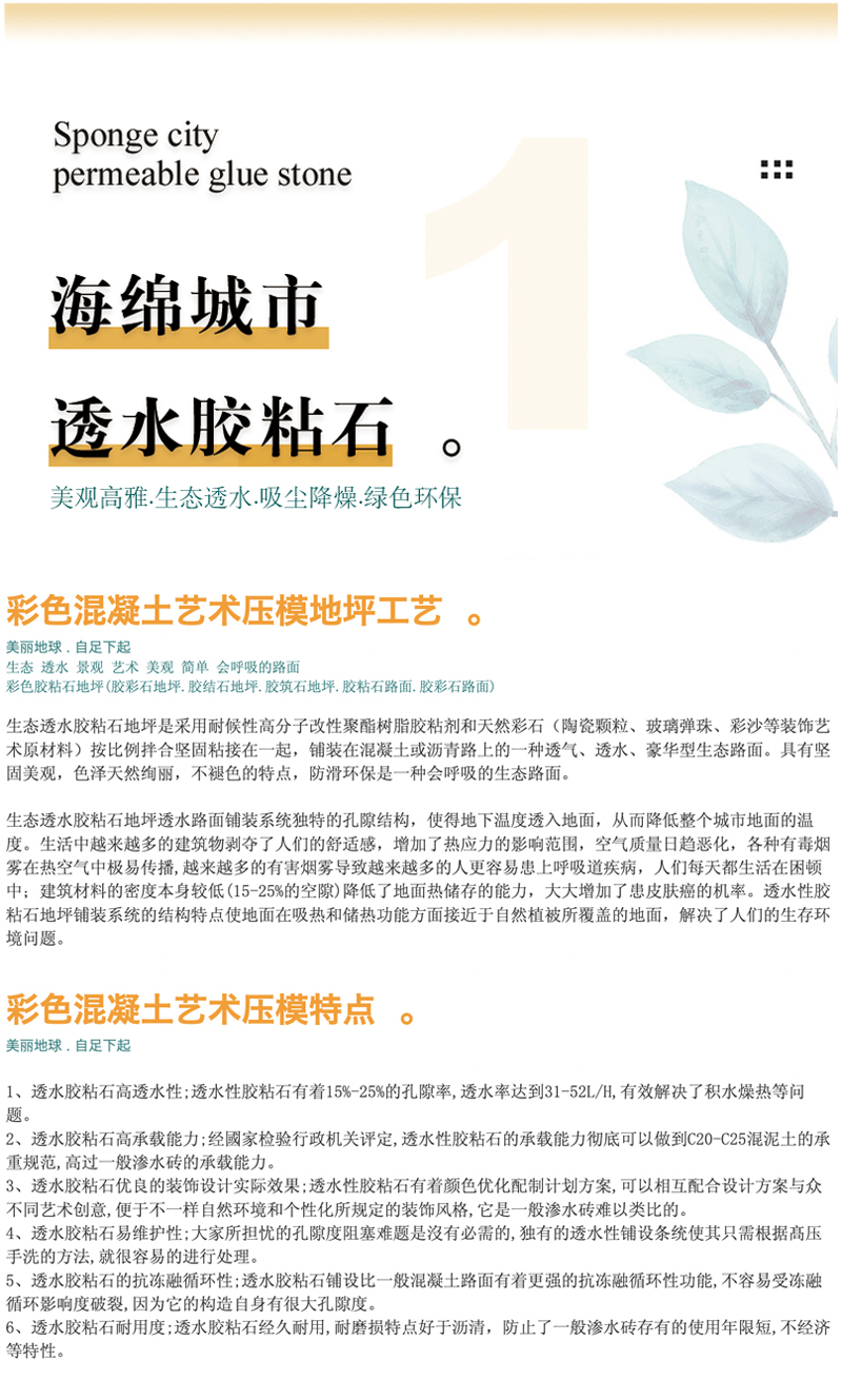 让我们呵护好我们家园- 生态胶彩石透水地坪系统,