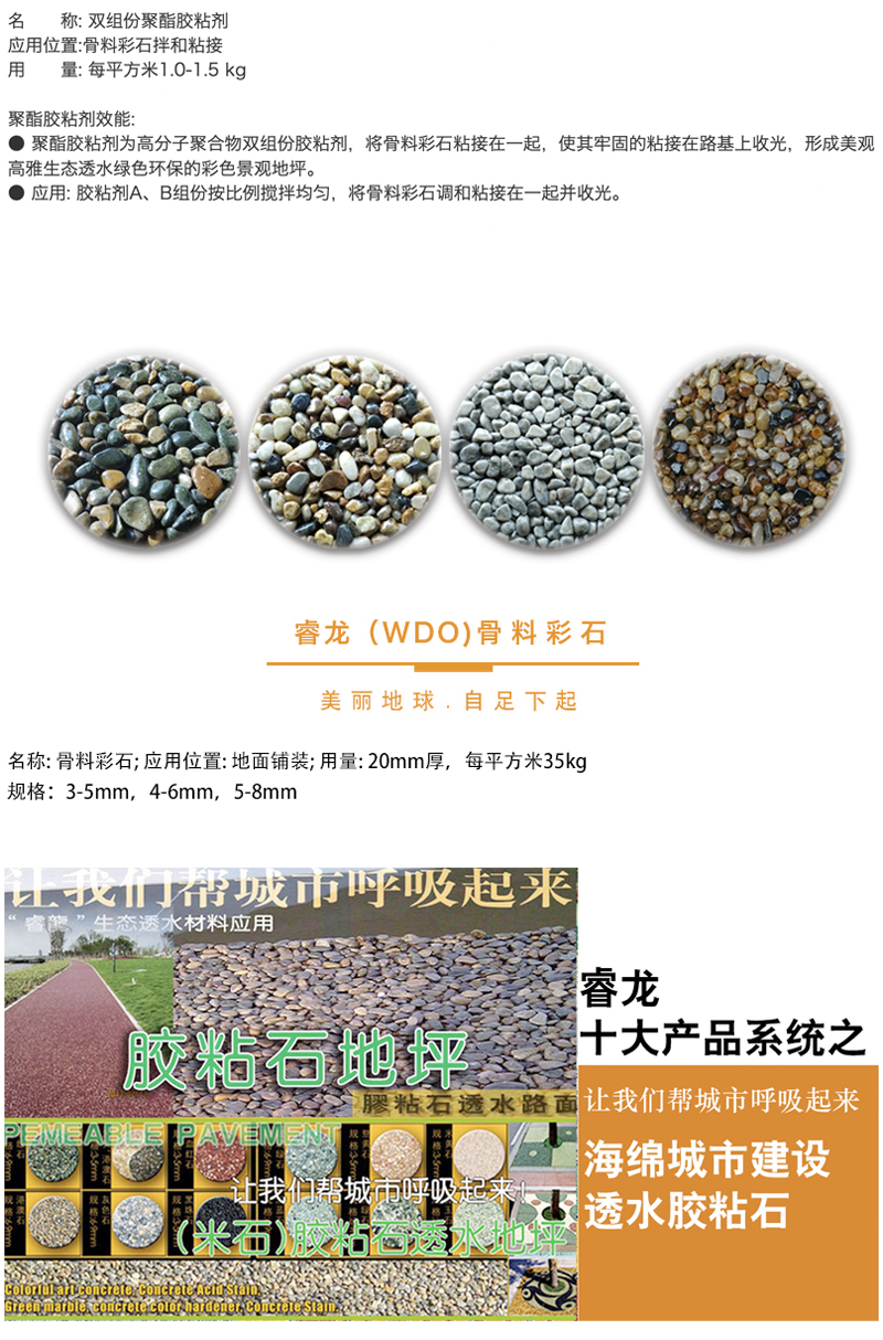 彩色胶粘石地坪材料:胶粘石胶 ,彩色石子