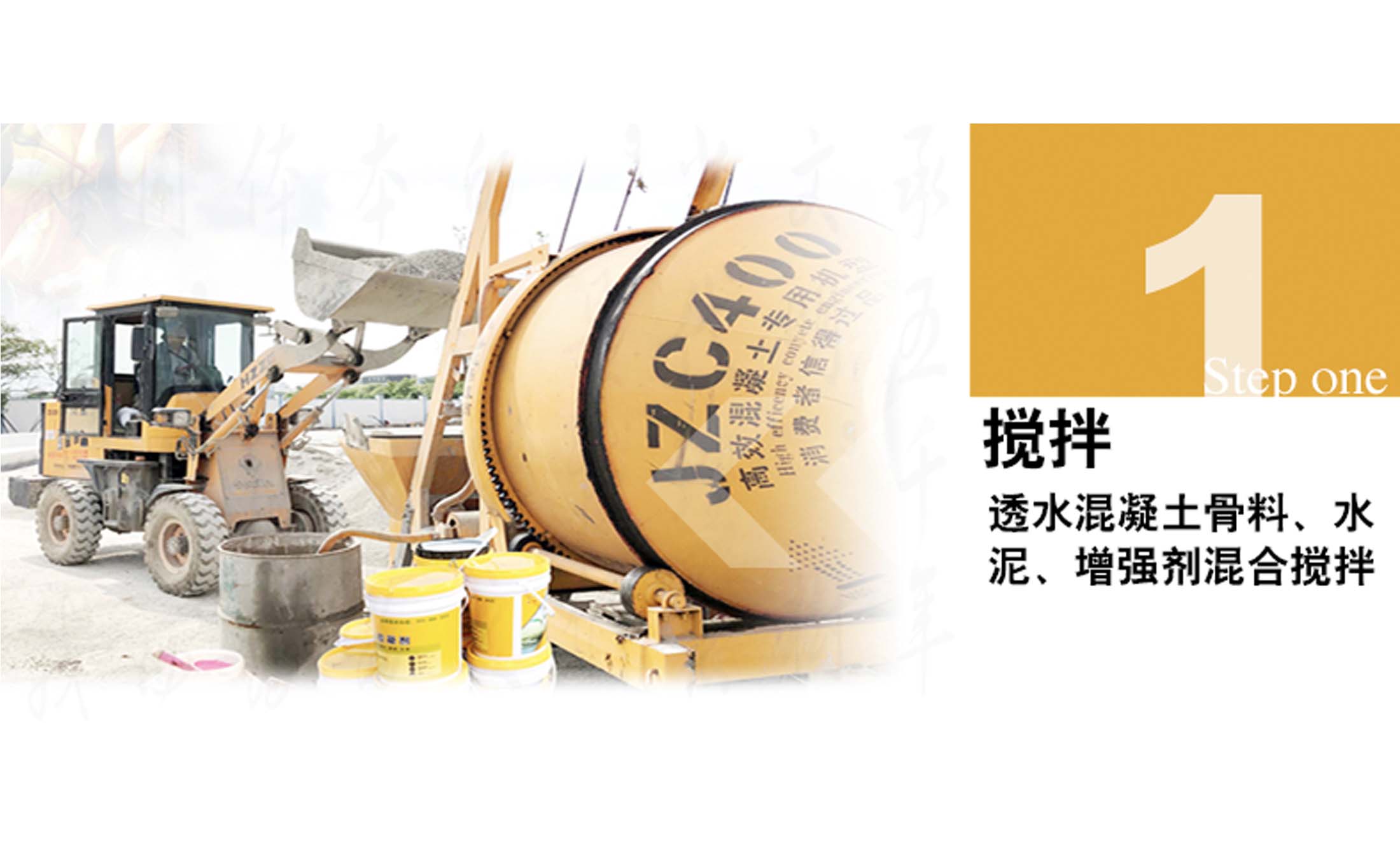 2) 每台班拌制前应测定集料中的含水率,根据集料的含水率,调整透水混凝土配比中的用水量,由施工现场实验确定施工配合比;
