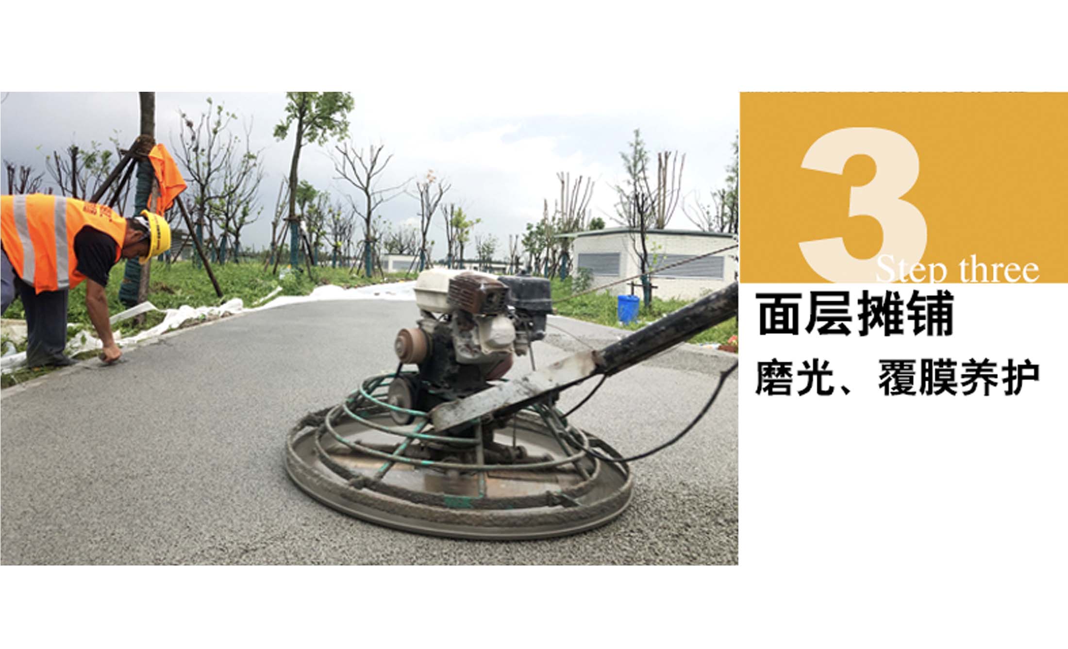 是将压实后的透水性混凝土表面进行抹平,使其达到规定的平整度要求且符合使用功能和外观要求的专用机械。