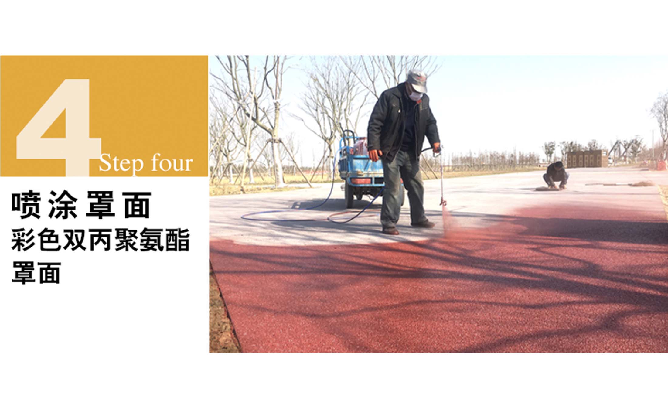 1、核心材料:透水混凝土增强剂,着色剂,彩色双丙聚氨酯树脂罩面剂