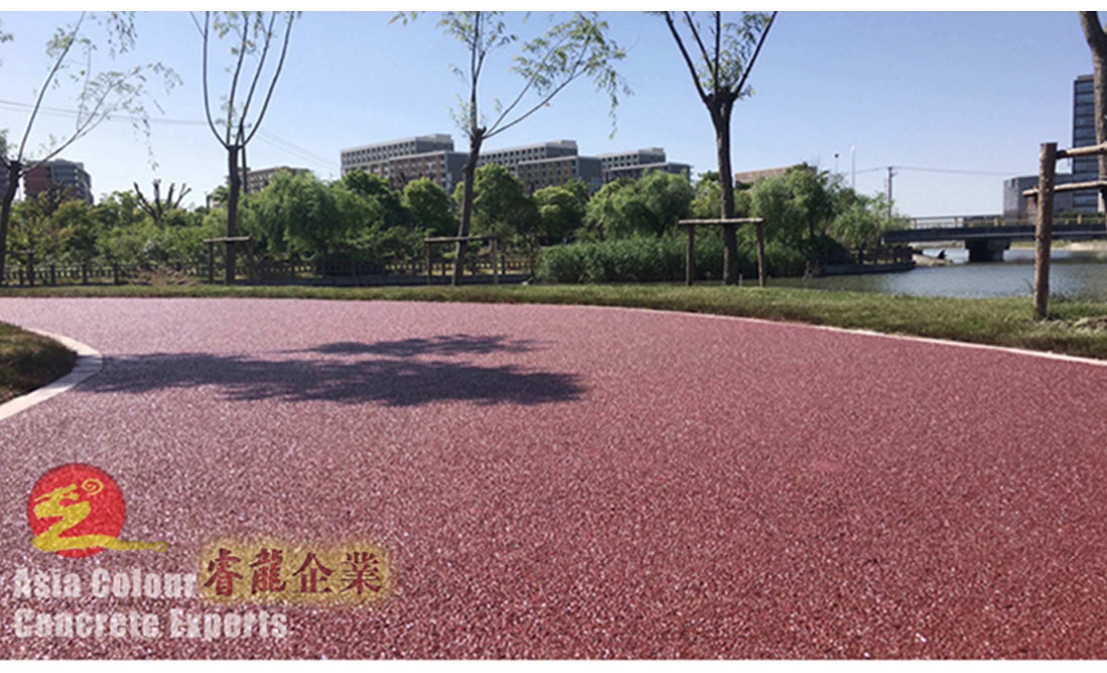 睿龙(WDO)彩色透水地坪能提供过滤效果,避免汽车及工业排放重金属,轮胎磨损及工业粉尘等直接流入河流中。